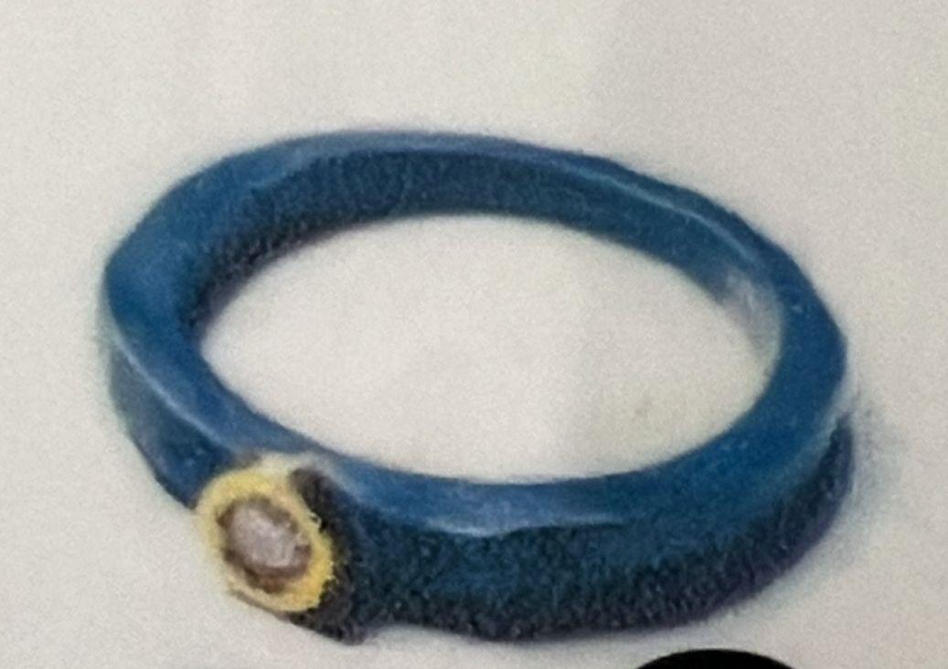 Anillo artesanal de plata oxidada, oro y diamante.