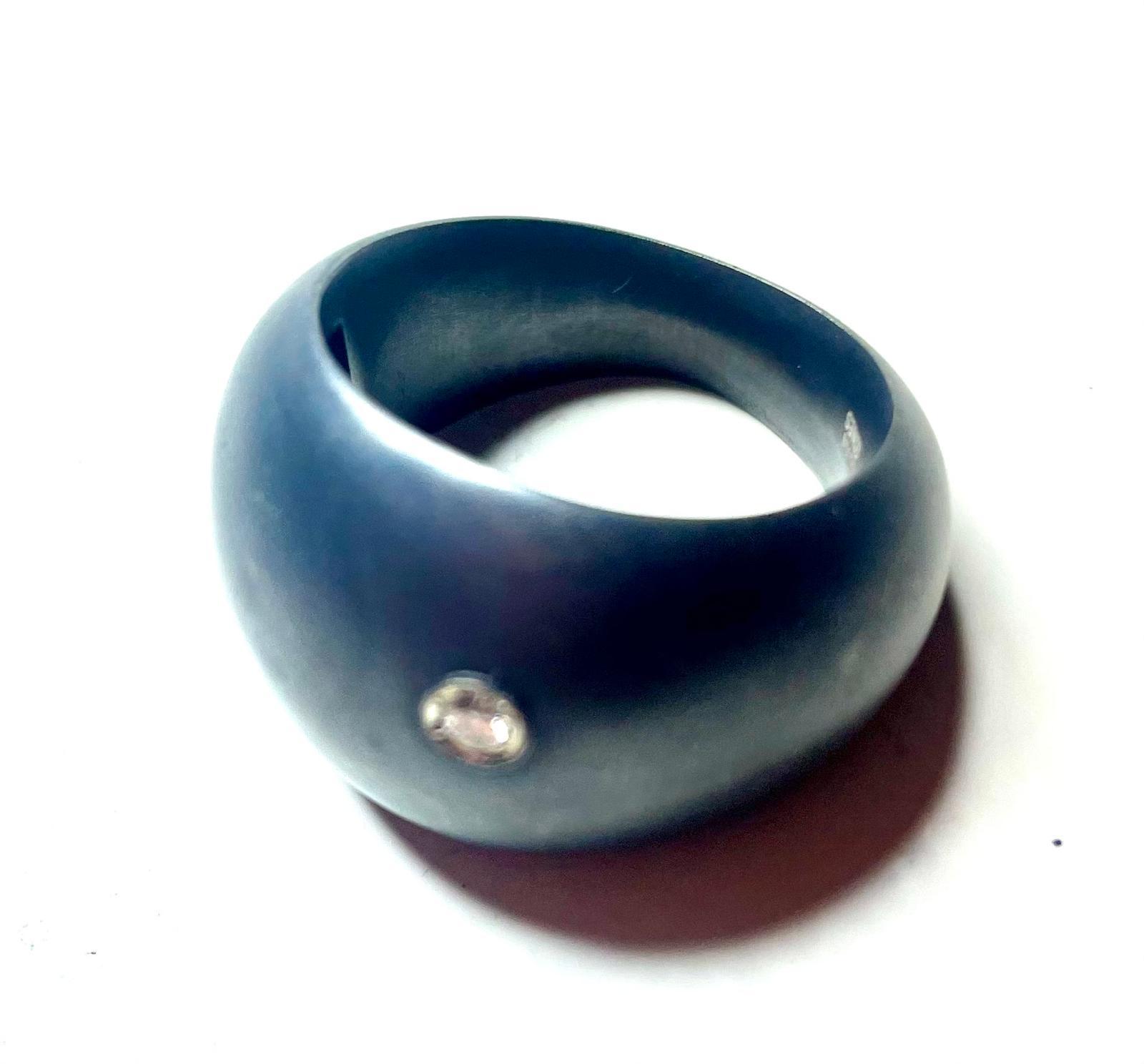 Anillo de plata oxidada con diamante central engarzado.